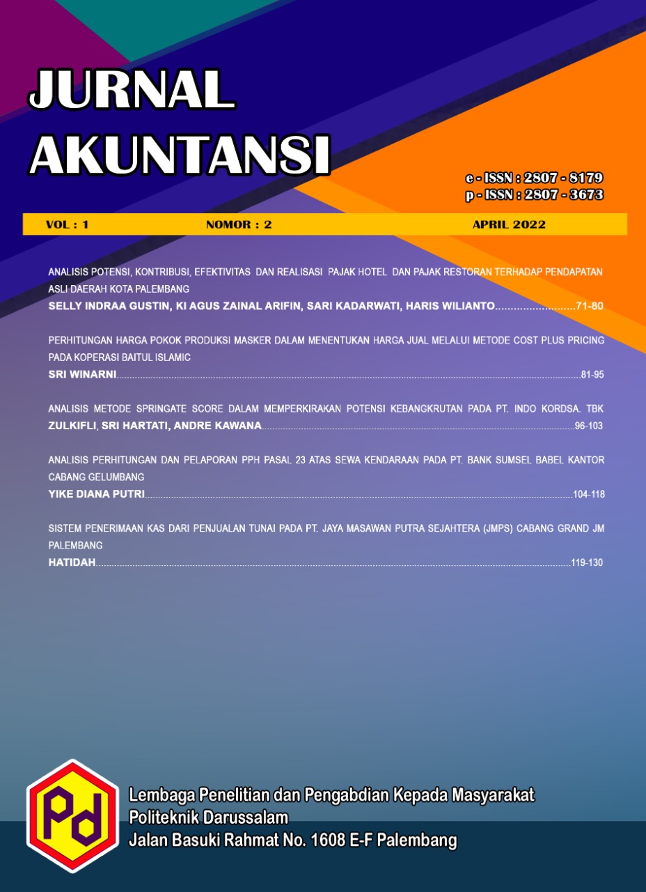 Vol. 1 No. 2 (2022)ANALISIS POTENSI, KONTRIBUSI, EFEKTIVITAS DAN REALISASI PAJAK HOTEL DAN PAJAK RESTORAN TERHADAP PENDAPATAN ASLI DAERAH KOTA PALEMBANG